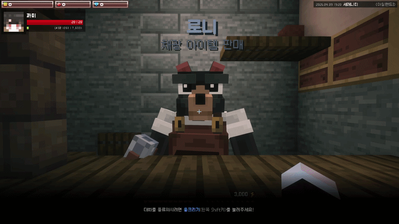 로니를 클릭하여 인사합니다. 3번 키를 눌러감정하기를 선택합니다.