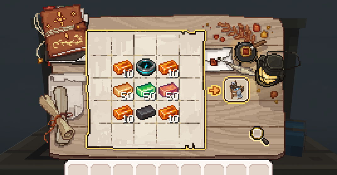확장된 5×5 제작을 통해 성장에 필요한 다양한 아이템을 만들 수 있는 대형 제작대를 소개합니다.