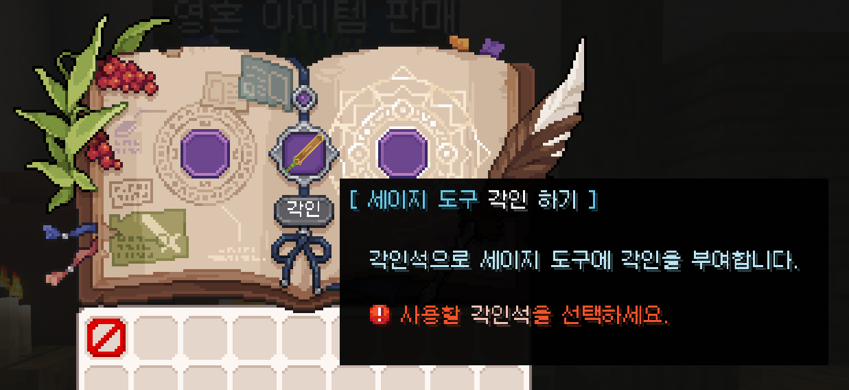 최소 강화 조건을 충족하지 못할 경우, 각인석이 선택되지 않아요.