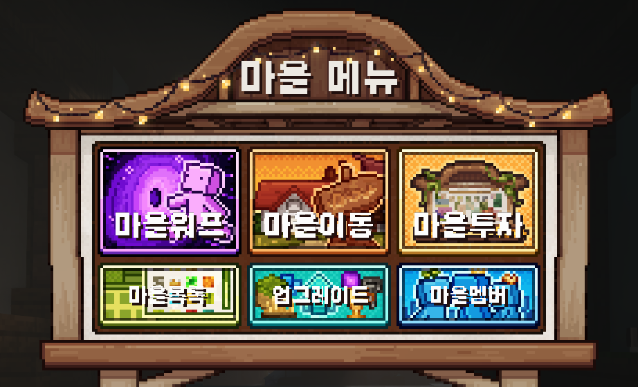 마을은 단순한 거주지를 넘어 유저의 생활과 성장을 이어가는 핵심 공간으로, 건축과 자원 관리, 업그레이드를 통해 점차 확장되며 다양한 즐길 거리를 제공합니다.
