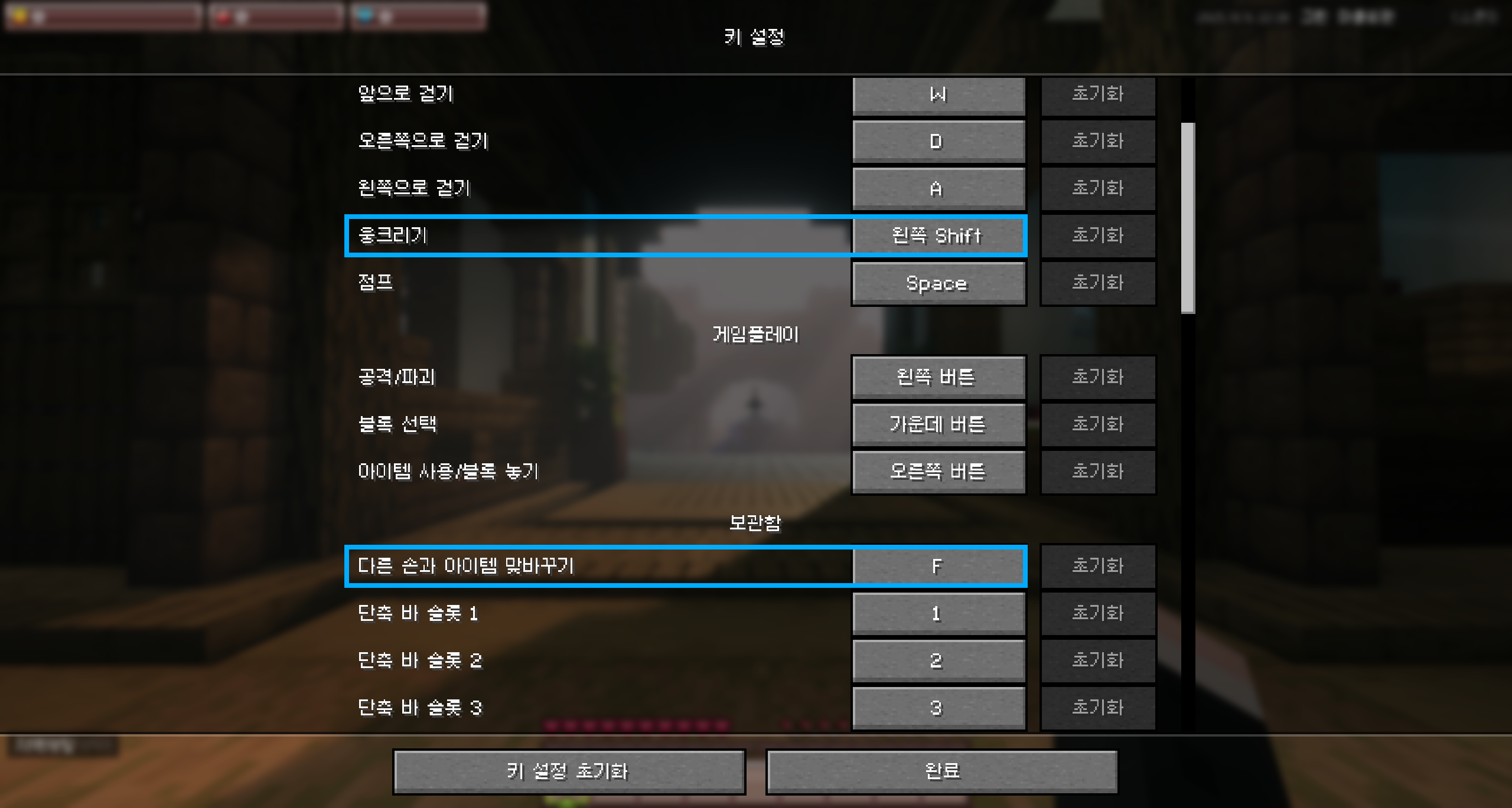 쉬프트+에프가 작동하지 않을 경우 자신의 웅크리기 키와 맞바꾸기 키를 확인해야 해요. 예를 들어, 웅크리기 키가 컨트롤이고 맞바꾸기 키가 티인 경우 컨트롤+티를 눌러야 해요.