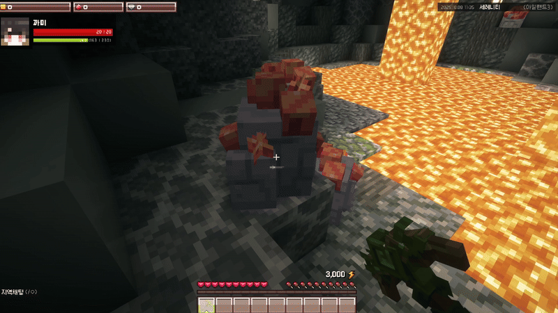 1. 곡괭이를 들고 좌클릭하여 광석을 채광할 수 있습니다.