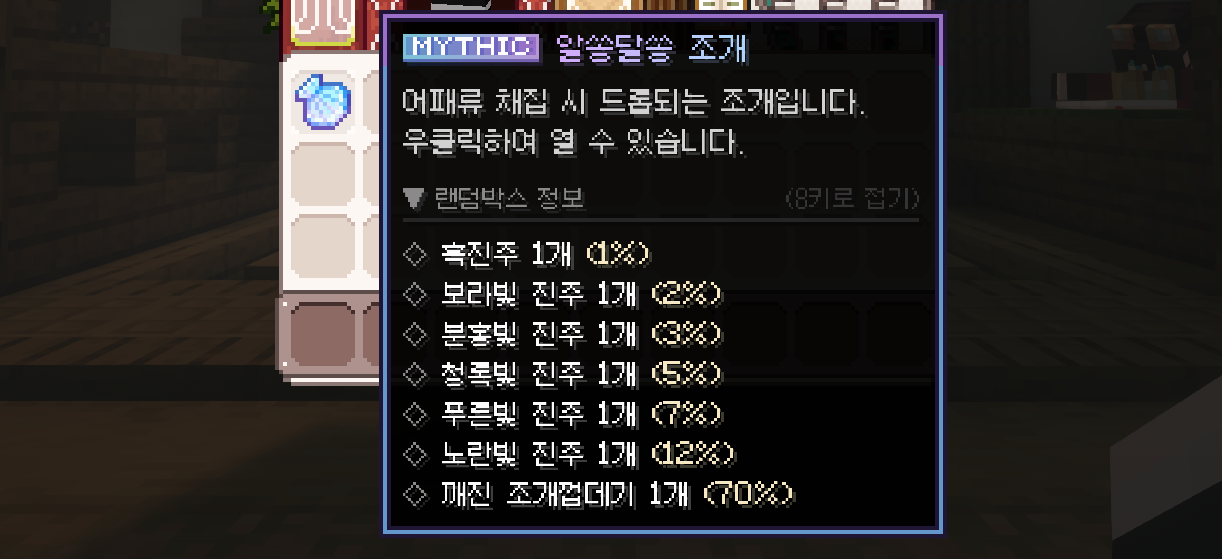 알쏭달쏭 조개는 알쏭달쏭 조개 처치 시 50% 확률로 드롭돼요.