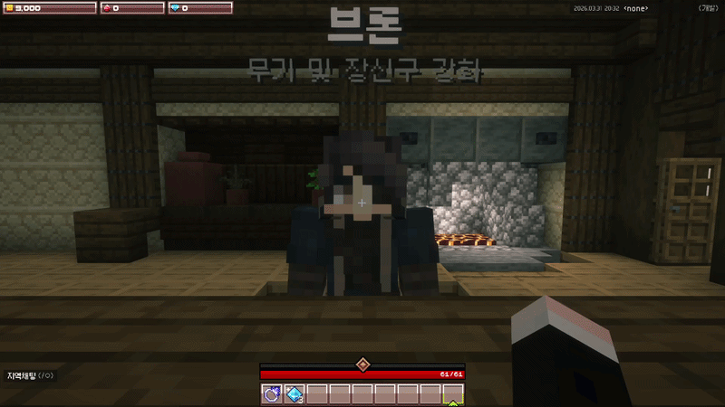 브론을 클릭하여 인사합니다. 1번 키를 눌러장비 강화하기를 선택합니다.