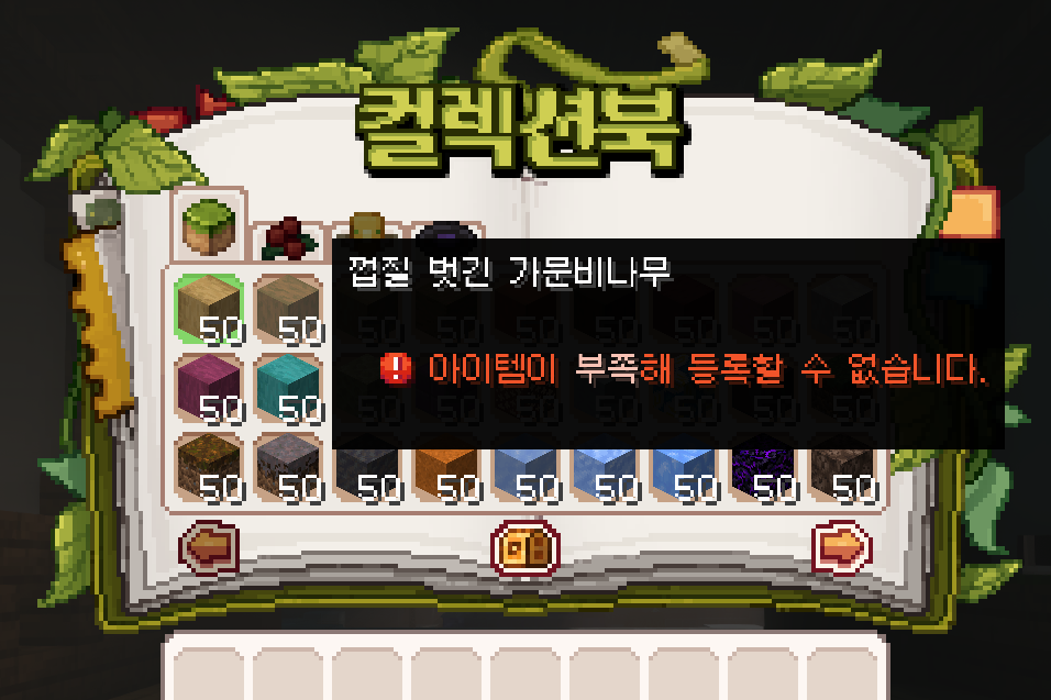 껍질 벗긴 창백한 참나무 | 50개 | 레드스톤 광석 | 50개 |