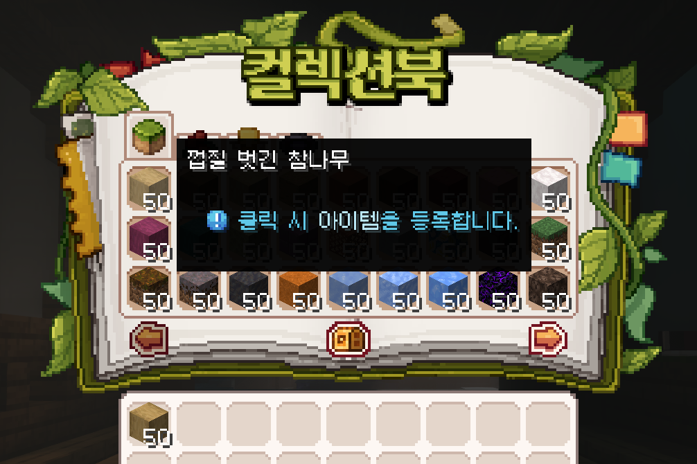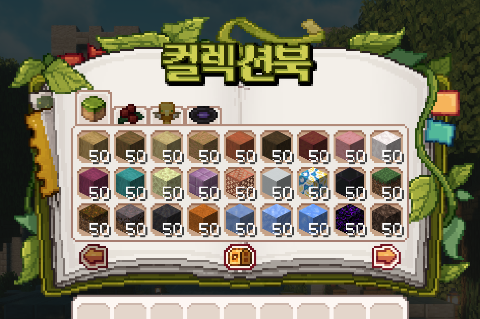 잔디 블록 | 50개 | 네더 석영 광석 | 50개 |