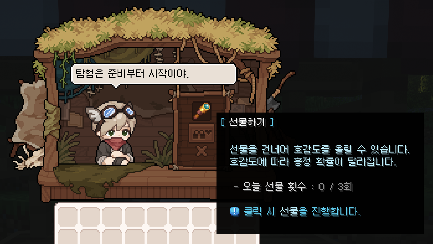 수렵꾼에게 잘못 건넨 호감도 아이템은 복구가 불가능해요.