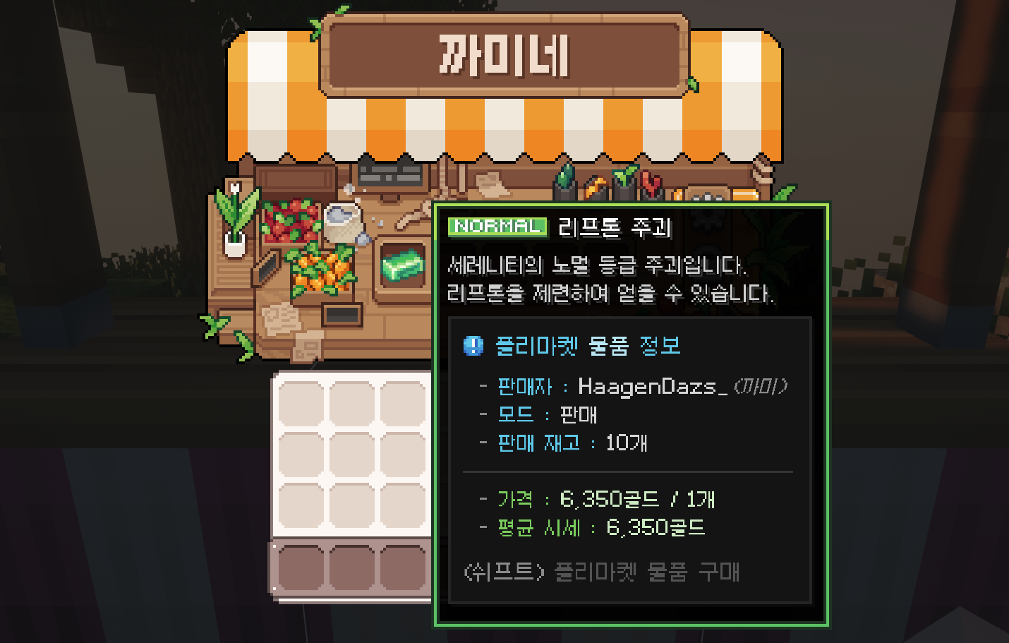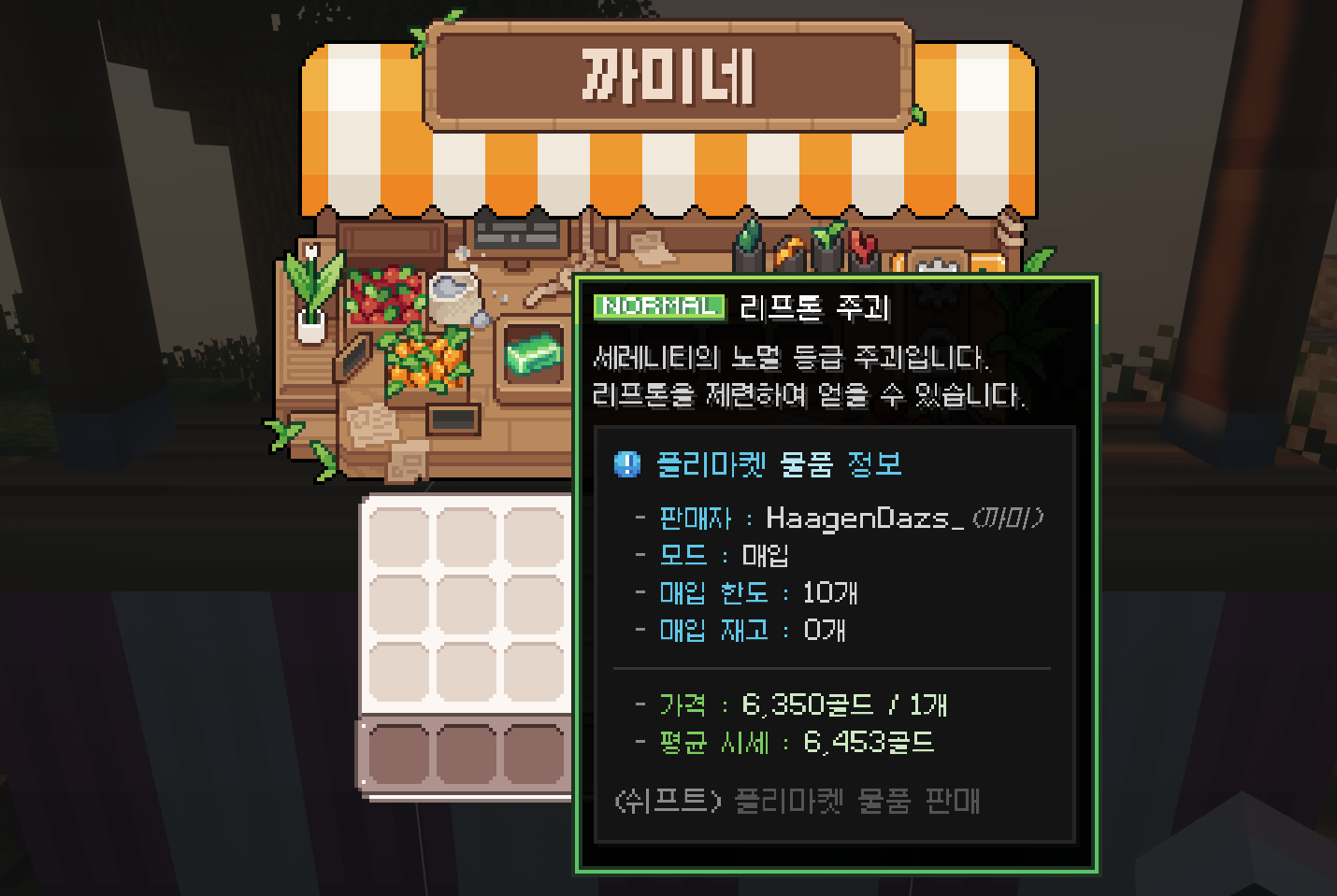 판매 중인 플리마켓에 방문하여 쉬프트+좌클릭으로 물품을 구매할 수 있어요.