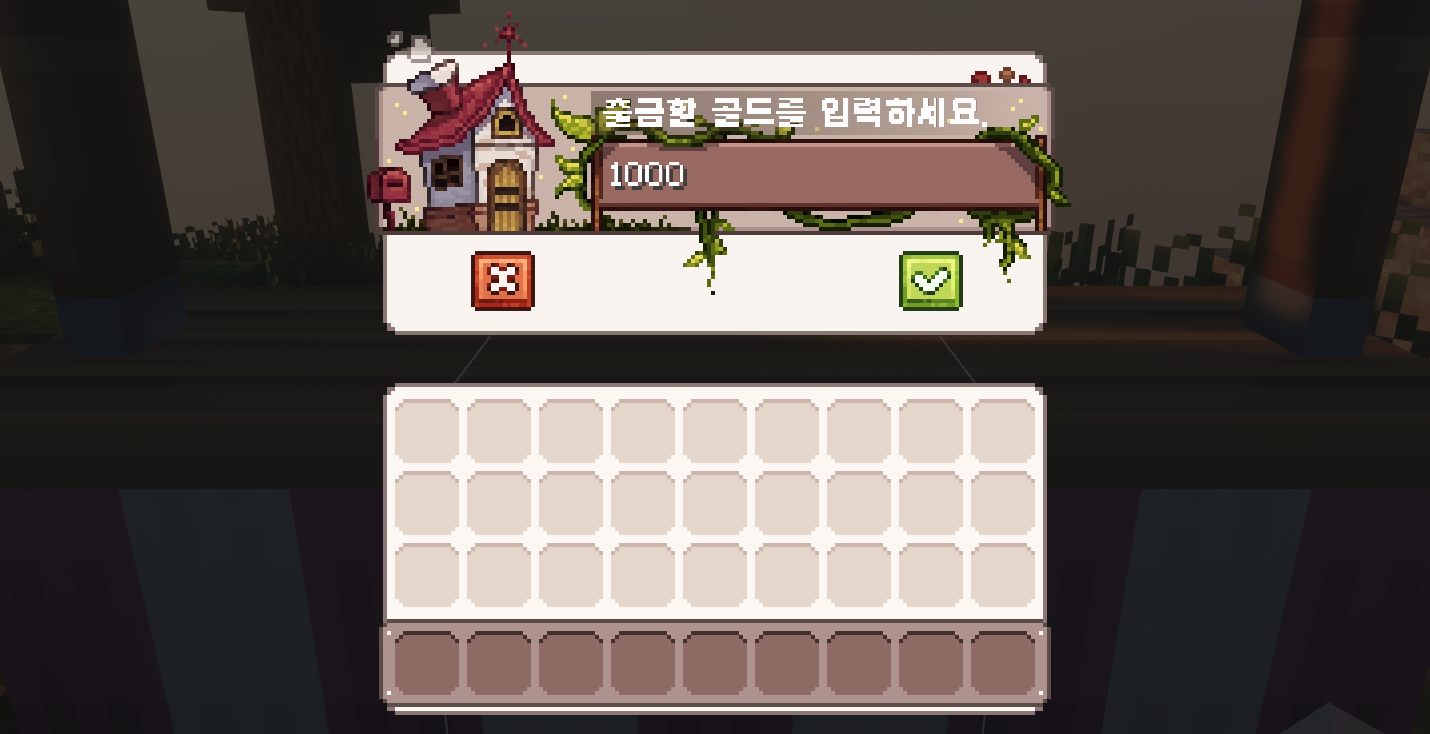 /플리마켓 금고 출금명령어로 입력 후, 활성화된 창에 금액을 입력하여 출금할 수 있습니다.