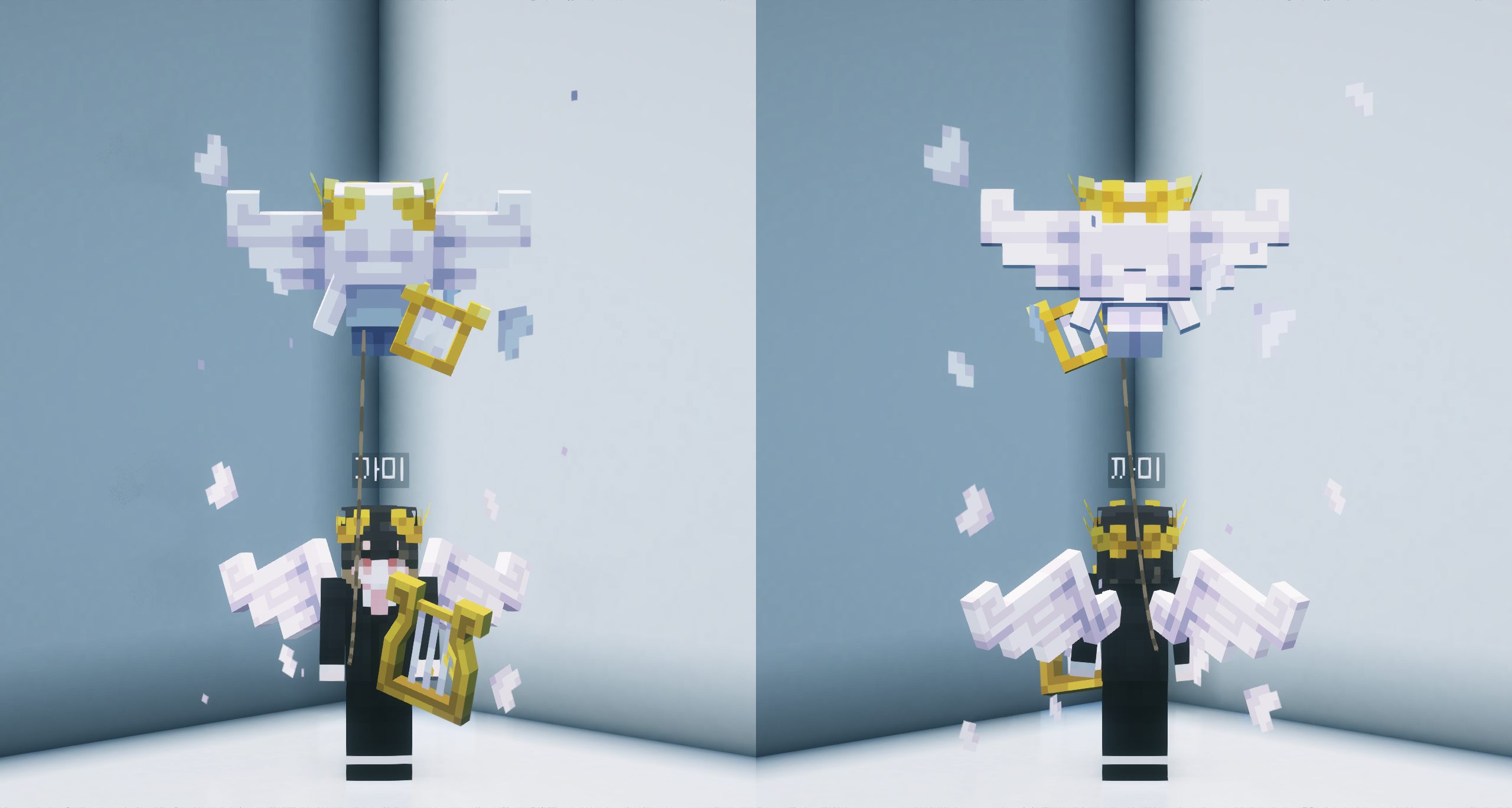 천사 월계관 치장 획득권, 천사 날개 치장 획득권, 천사 하프 치장 획득권, 천사 풍선 치장 획득권을 통해 얻을 수 있습니다.