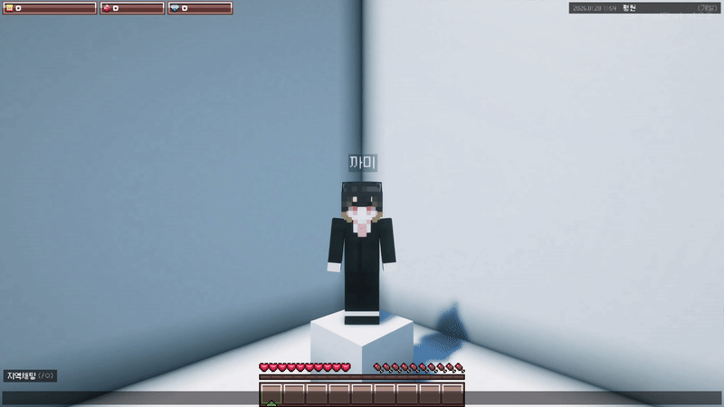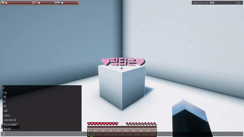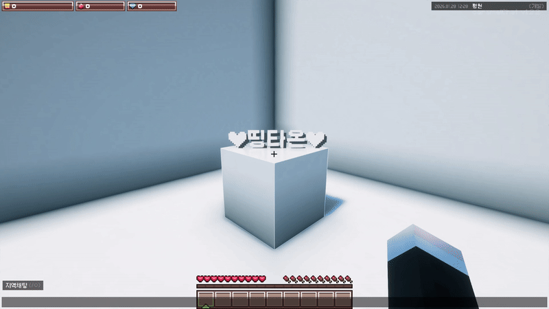 홀로그램 설치권은 /홀로그램 명령어를 사용할 수 있게 해주는 특별한 권한 아이템입니다. 홀로그램은 공간에 글자를 표시해 보여주는 디스플레이 요소입니다. 이를 통해 마을에 이름, 안내 문구, 장식용 문장 등을 눈에 잘 띄게 배치할 수 있습니다. 홀로그램은 글자의 색상과 크기를 조절할 수 있어, 목적에 맞게 다양한 연출이 가능합니다.